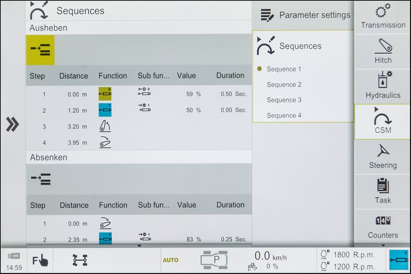 Das Vorgewendemanagement CSM übernimmt für Sie die Arbeit bei allen Wendemanövern. Mit einem Knopfdruck werden alle zuvor aufgenommenen Funktionen abgespielt.